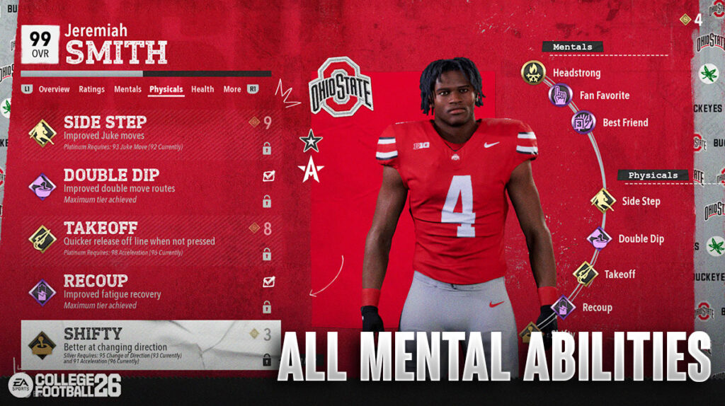 Regardless of what mode you play, Mental Abilities play a big role in your College Football 26 gameplay experience. Although some abilities seem more overpowered, all mental abilities do a great job in helping you play better.