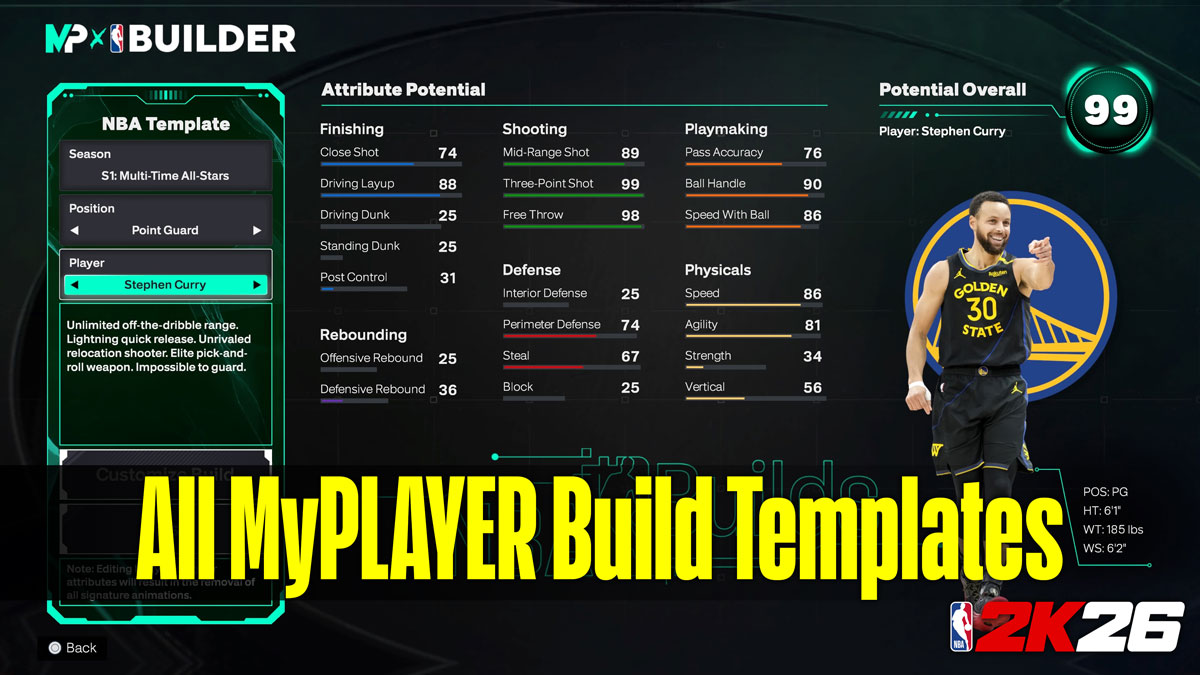 NBA 2K26 MyPLAYER mode offers dozens of real NBA player build templates to choose from before you begin MyCAREER. Although you can build a custom template, players who want a simple experience can choose a build template based on one of their favorite players in the league. Therefore, we listed all real NBA player templates that you can use in NBA 2K26 MyPLAYER mode.